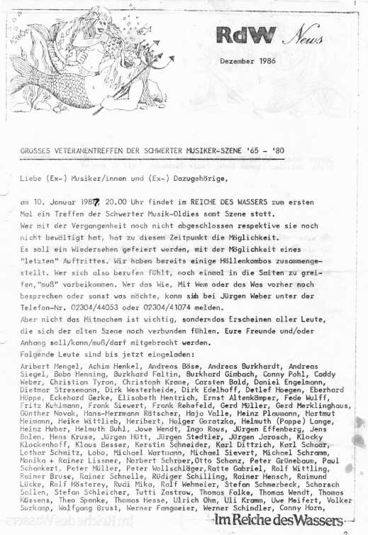 Die bisher älteste Spur in unserem Archiv verweist auf ein Veteranentreffen am 10. Januar 1987 im RdW. Da waren noch Künstler am Werk...