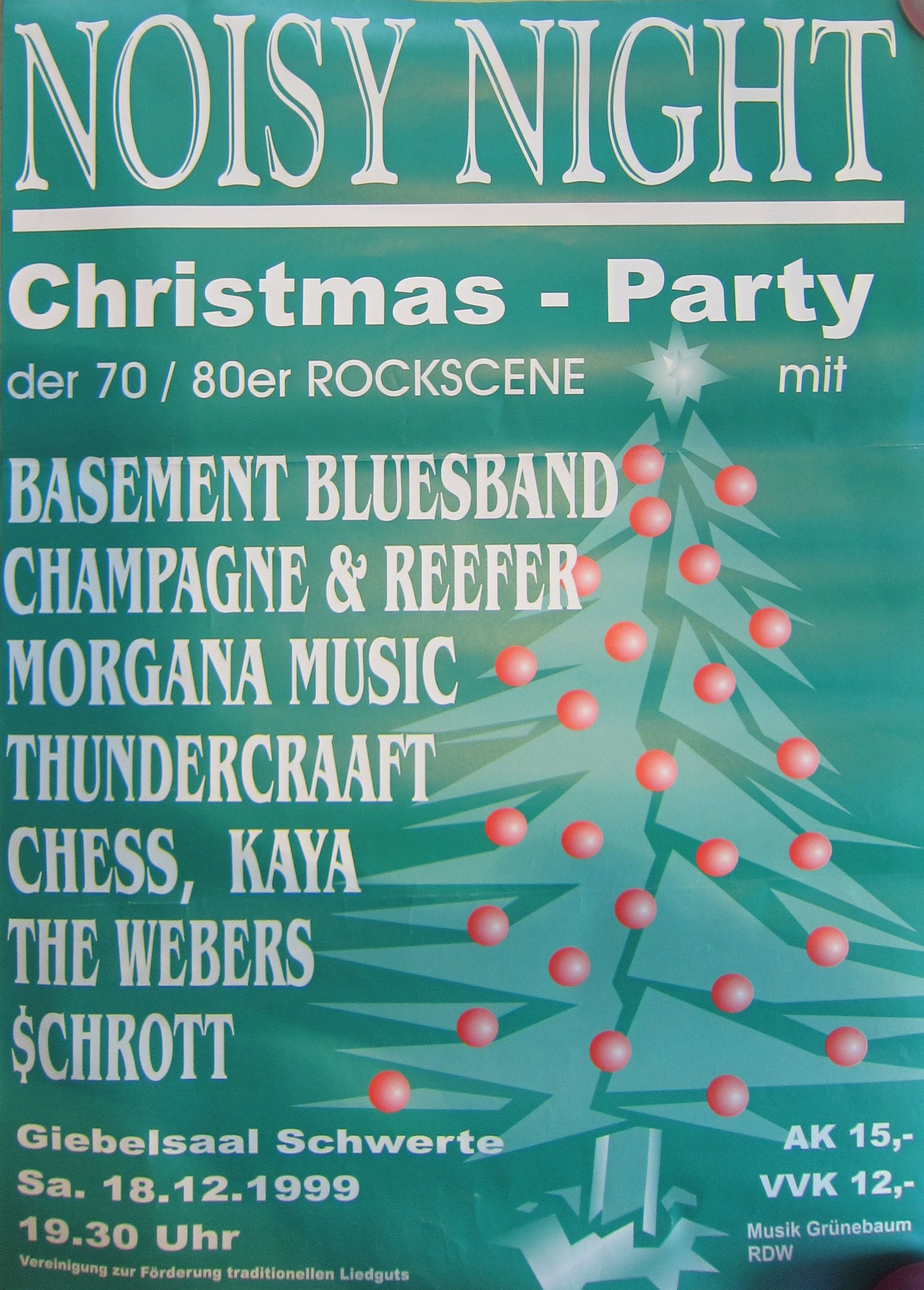 Die Noisy Night am Samstag, 18. Dezember 1999, sollte ursprünglich im Giebelsaal stattfinden, musste aber kurzfristig ins RdW verlegt werden.