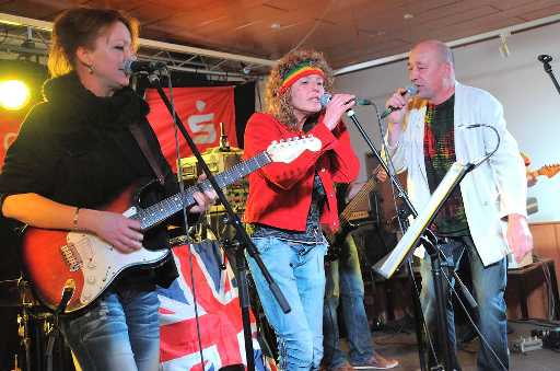 Schlag auf Schlag ging es weiter: Die Reggae-Combo Kaya, um Sänger Daniel Engelmann, verbreitete mit ihrem Gute-Laune-Sound Jamaica-Feeling. Die Band ließ Reggae-Größen wie Bob Marley oder Peter Tosh lebendig werden. Mit bunt Gemischtem aus Rock über Blues bis Pop zeigte die fünfköpfige Coverband Rock Well einen Querschnitt ihres musikalischen Könnens, die viel gesangliche Unterstützung durch das Publikum erhielt.